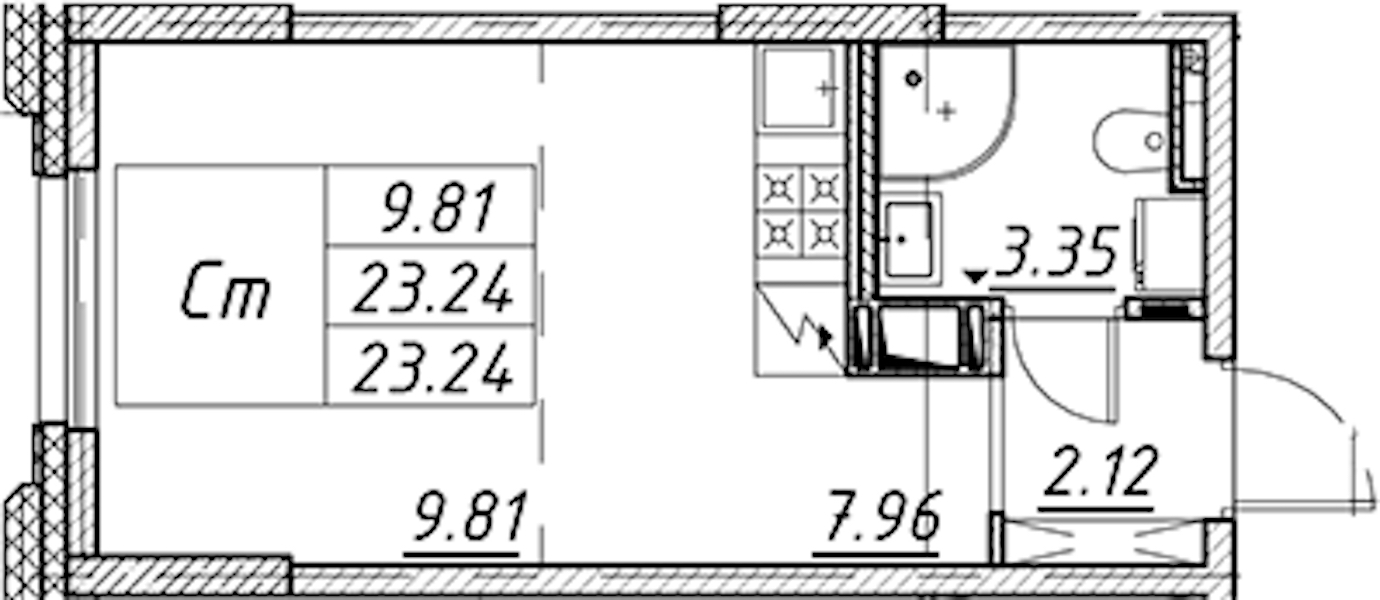 Квартира-студия на 4-ом этаже 23,24 кв.м