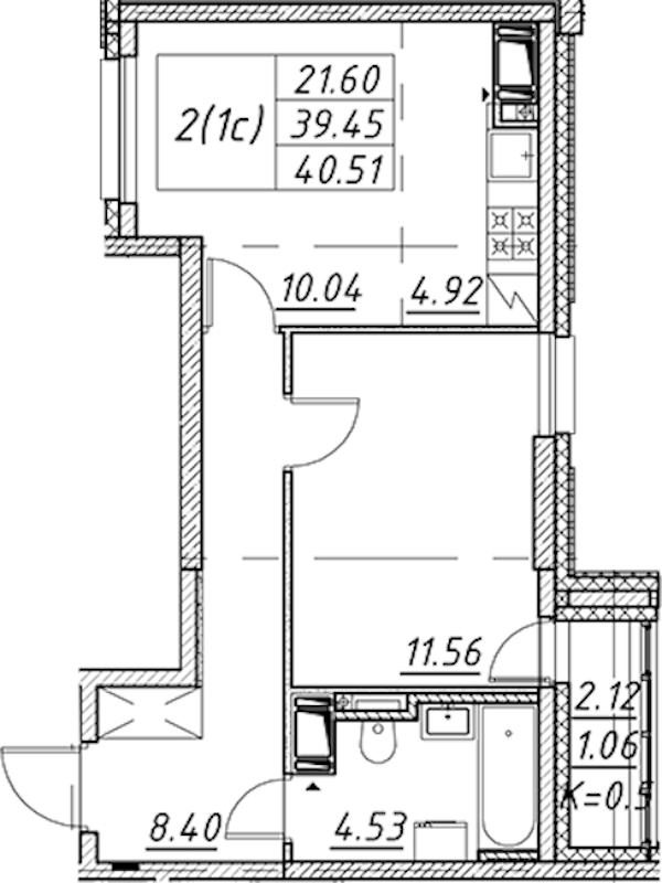 - Площадь40,51 м2