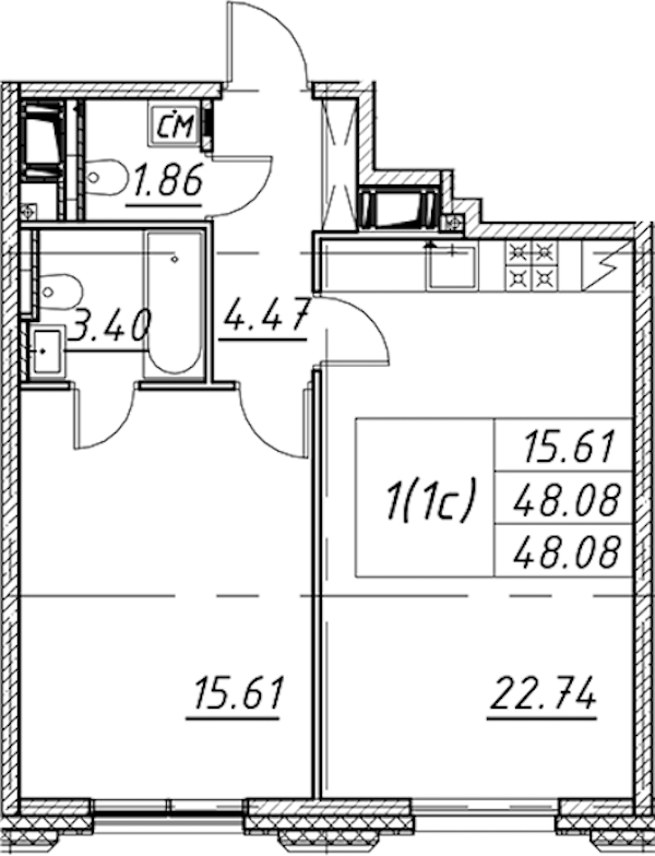 - Площадь48,08 м2