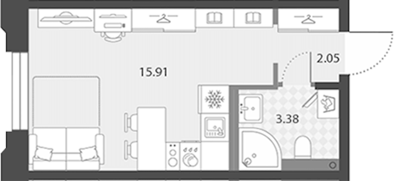 Квартира-студия на 2-ом этаже 21,34 кв.м