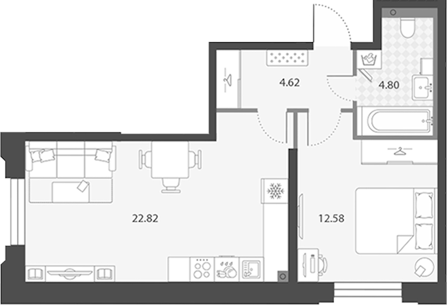 - Площадь кухни22,82 м2