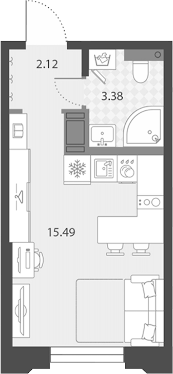 Квартира-студия на 3-ем этаже 20,99 кв.м