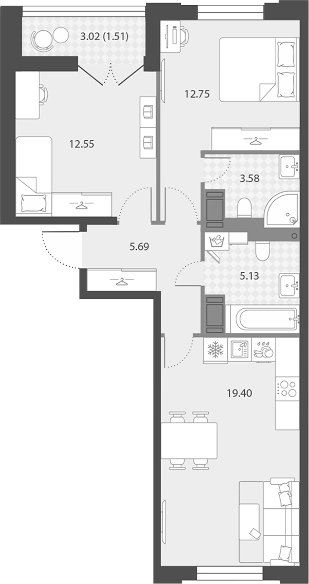 - Площадь60,61 м2