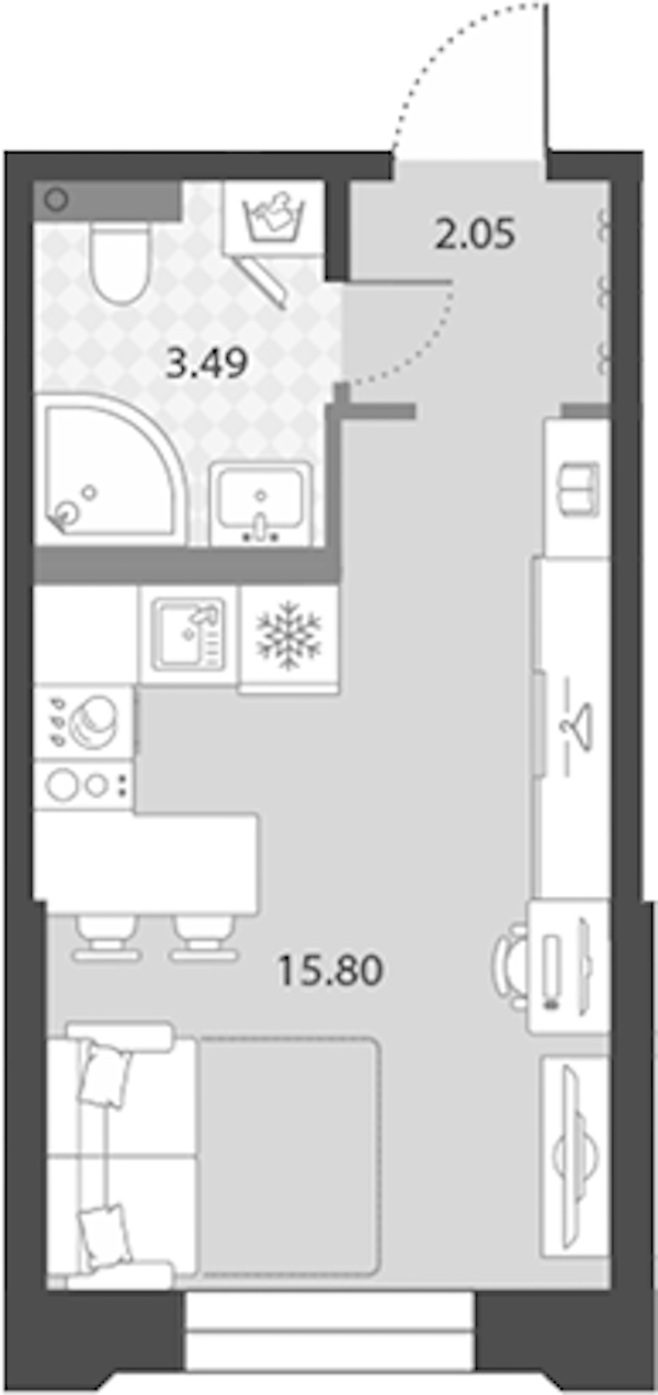 Квартира-студия на 2-ом этаже 21,34 кв.м