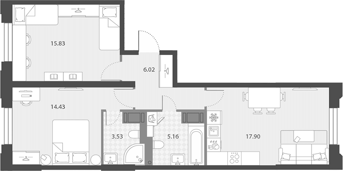 - Площадь62,87 м2