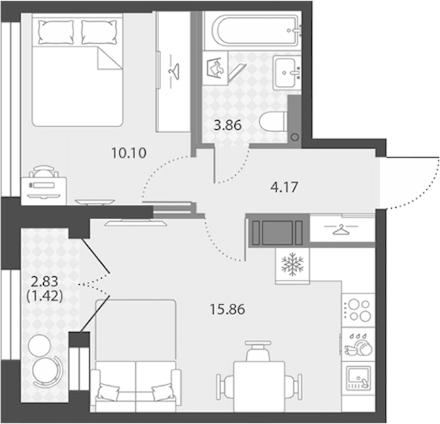 Однокомнатная квартира на 12-ом этаже 35,41 кв.м