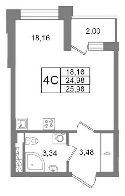 Квартира-студия на 4-ом этаже 24,98 кв.м