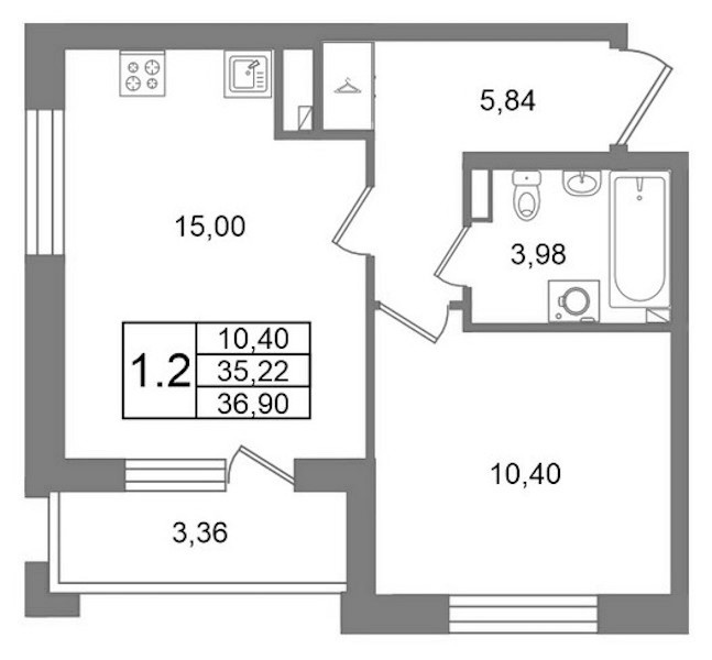 - Площадь35,22 м2