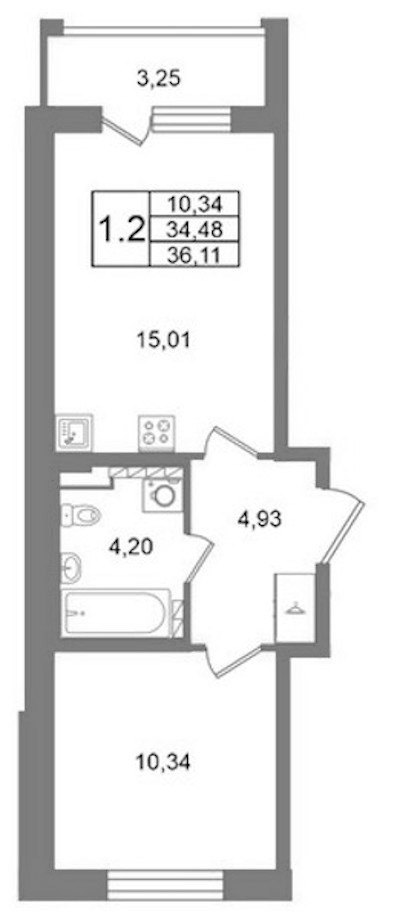 - Площадь34,48 м2