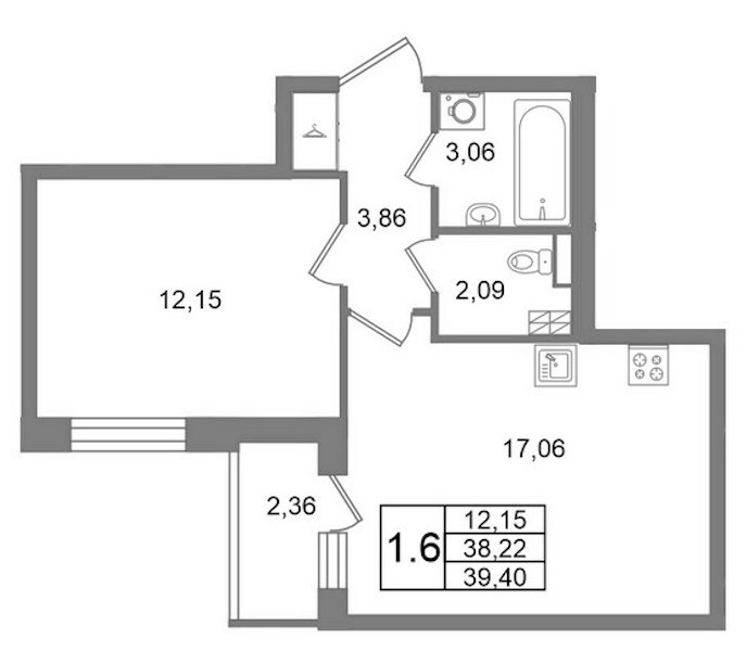- Площадь38,22 м2