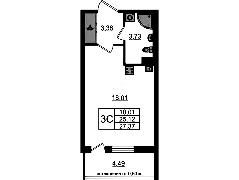 - Площадь25,12 м2