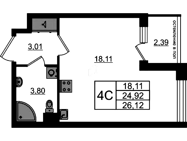Квартира-студия на 1-ом этаже 24,92 кв.м