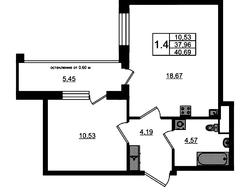 Однокомнатная квартира на 1-ом этаже 37,96 кв.м