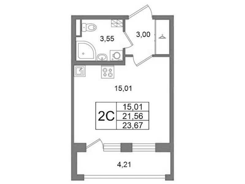 Квартира-студия на 4-ом этаже 21,56 кв.м