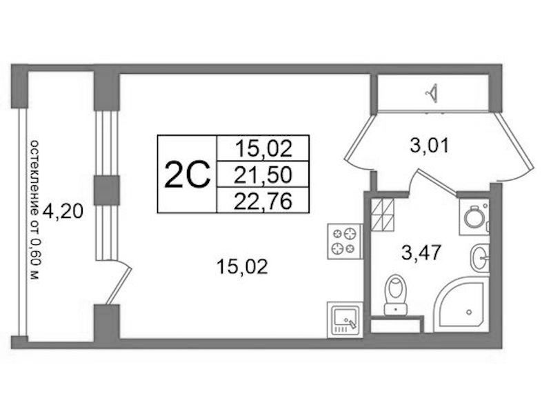 - Площадь21,5 м2