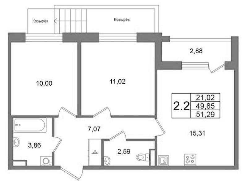 • Площадь49,85 м2
