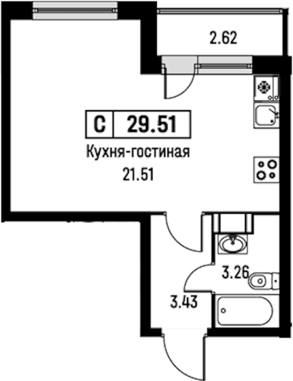 Квартира-студия на 4-ом этаже 29,51 кв.м