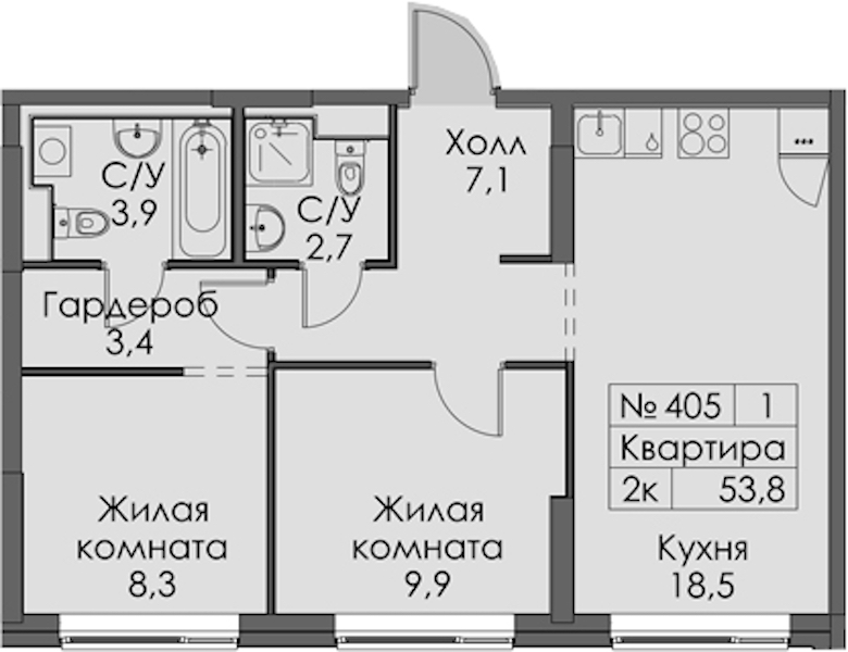 - Площадь53,8 м2