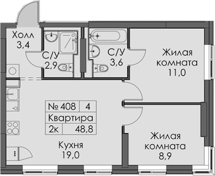 - Площадь48,8 м2