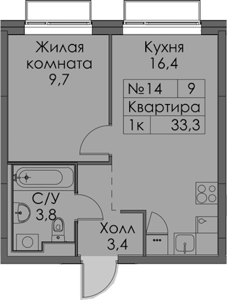 - Площадь33,3 м2
