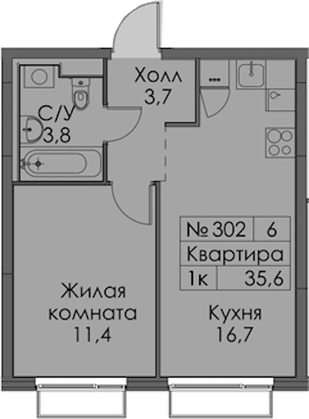 - Площадь35,6 м2