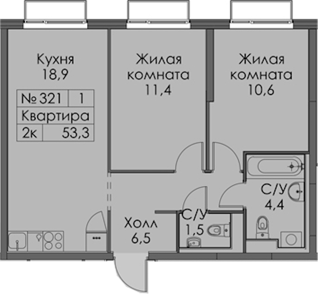 • Площадь53,3 м2