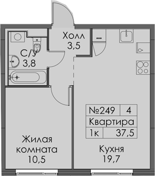 - Площадь37,5 м2