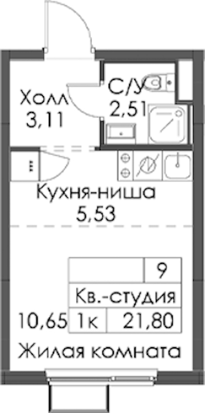 - Площадь21,8 м2