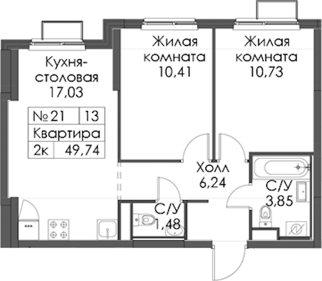 - Площадь49,74 м2