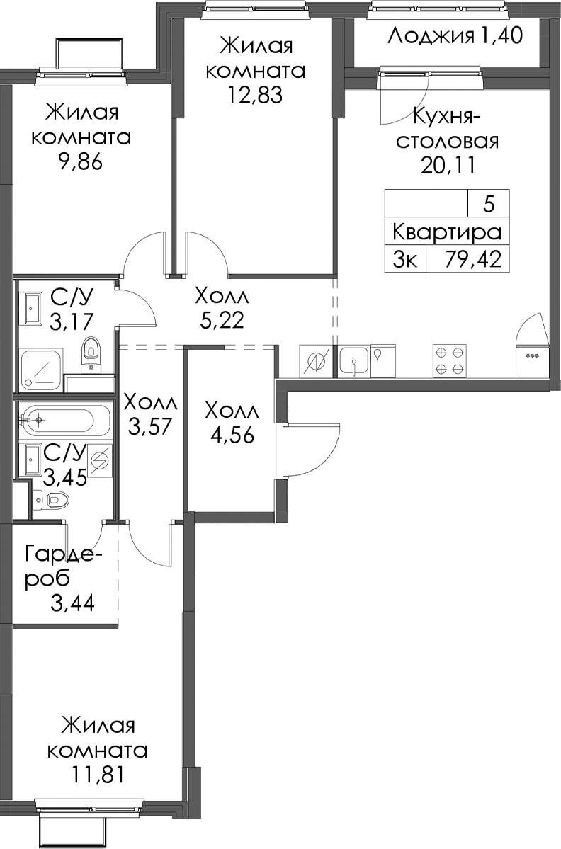 - Площадь79,42 м2