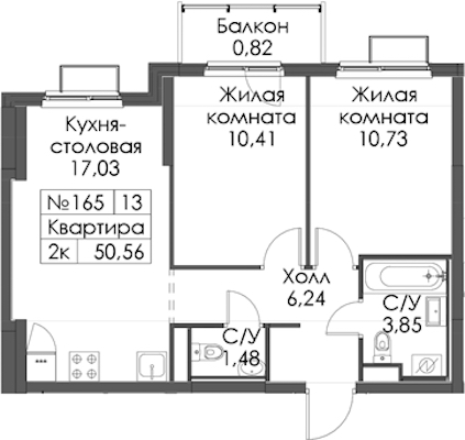 - Площадь50,56 м2