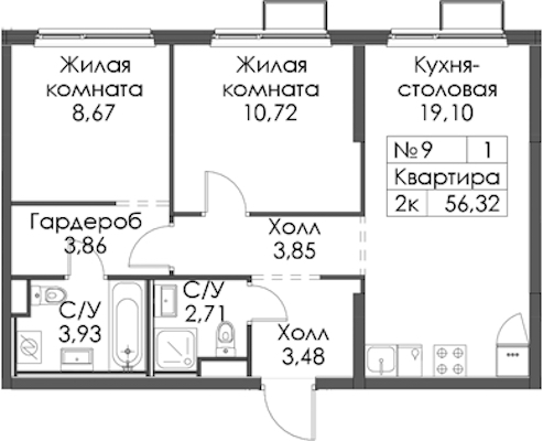 - Площадь56,32 м2