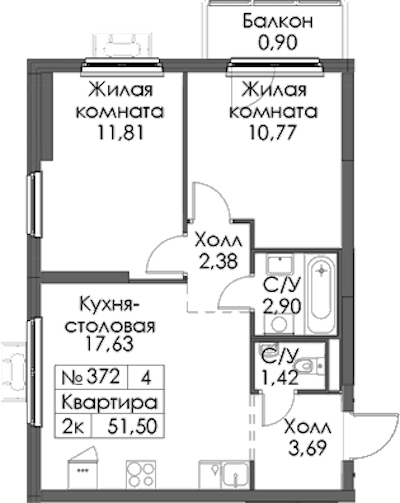 - Площадь51,5 м2