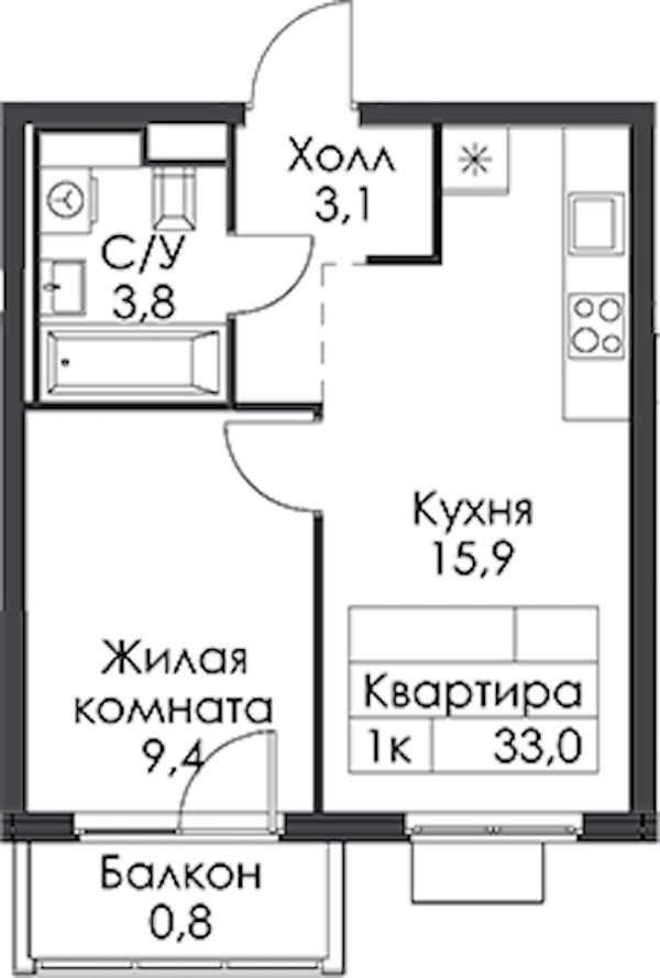 - Площадь33 м2