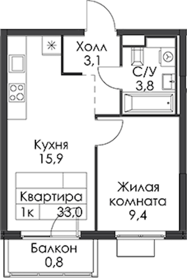 - Площадь33 м2