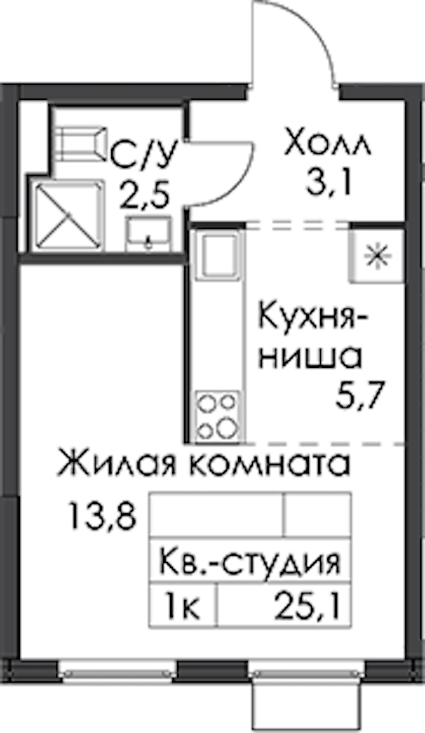 - Площадь25,1 м2